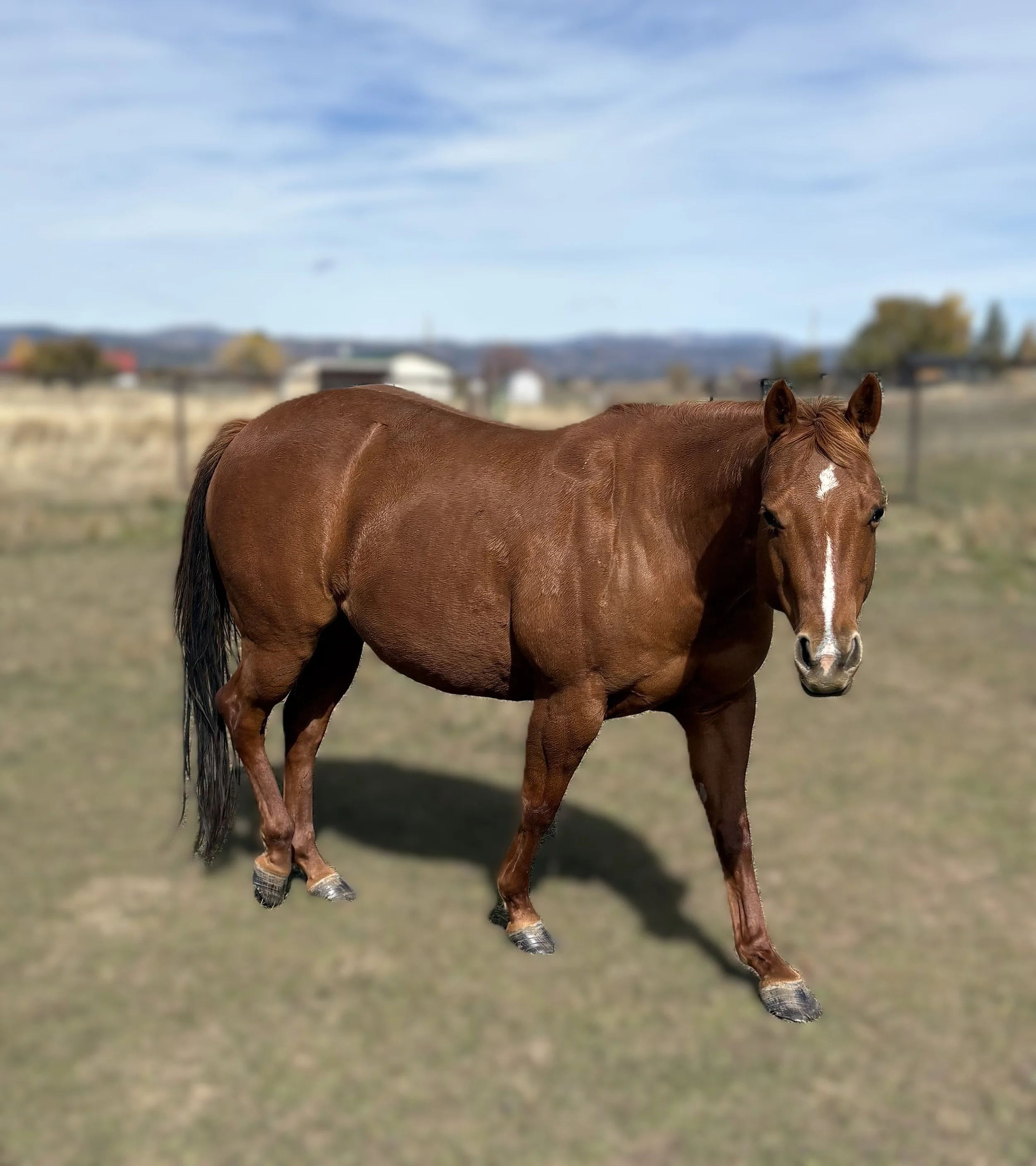 Conley’s Glory is a 6-year-old AQHA-registered mare with a pedigree packed with performance potential. Her top side traces back to the legendary Frenchmans Guy, bringing speed and athleticism, while her bottom side features Playgun and Sixes Pick, known for their cow sense and versatility. Though AQHA has her registered as a sorrel, she is a uniquely colored dun mare that stands out in any pasture. Glory is not broke to ride and has a feisty, spirited nature—she’ll need an experienced horseman to bring out her full potential. With the right hand, this mare has the foundation to produce exceptional performance prospects or be developed into a powerhouse herself. A tremendous broodmare or project for someone who values speed, cow, and color.